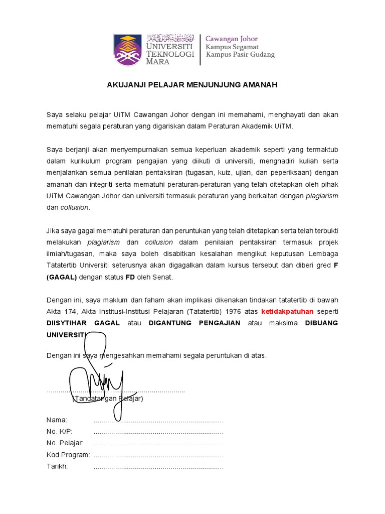 Borang Akujanji Pelajar Menjunjung Amanah Pdf